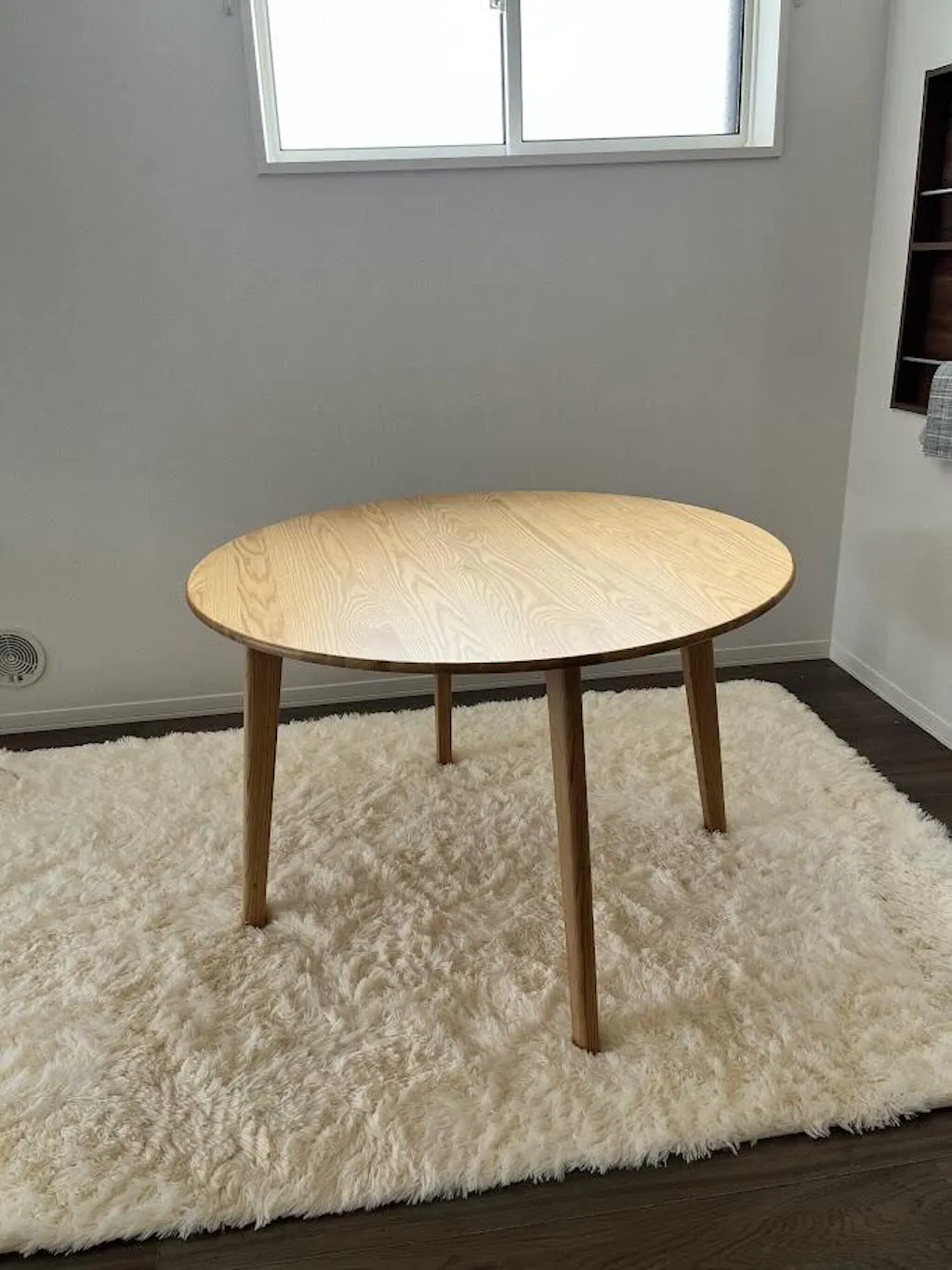 直径108cmの天板は、2人ならゆったり、4人ならコンパクトに囲める使いやすいサイズ感。広すぎず狭すぎない、なじみやすい一台です。