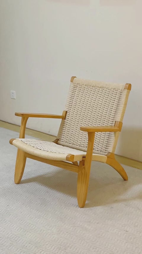 上質な無垢材フレームと、職人が丁寧に編み上げたペーパーコードが織りなす北欧スタイルのラウンジチェア。