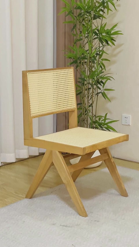 背と座に施されたラタンは、ほどよい透け感で視界を邪魔せず、軽快な印象に。